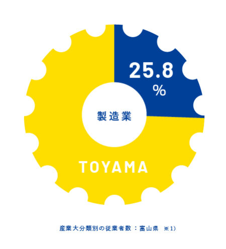 それもそのはず、富山県内の従業者数の25.8% ※ 1 )が製造業に従事。さらに、第2次産業の人口割合になると全国でトップ ※ 2 )だそうです。約4人に1人が製造業に携わるとすれば、いつも飛び交う会話にも納得ができますよね。