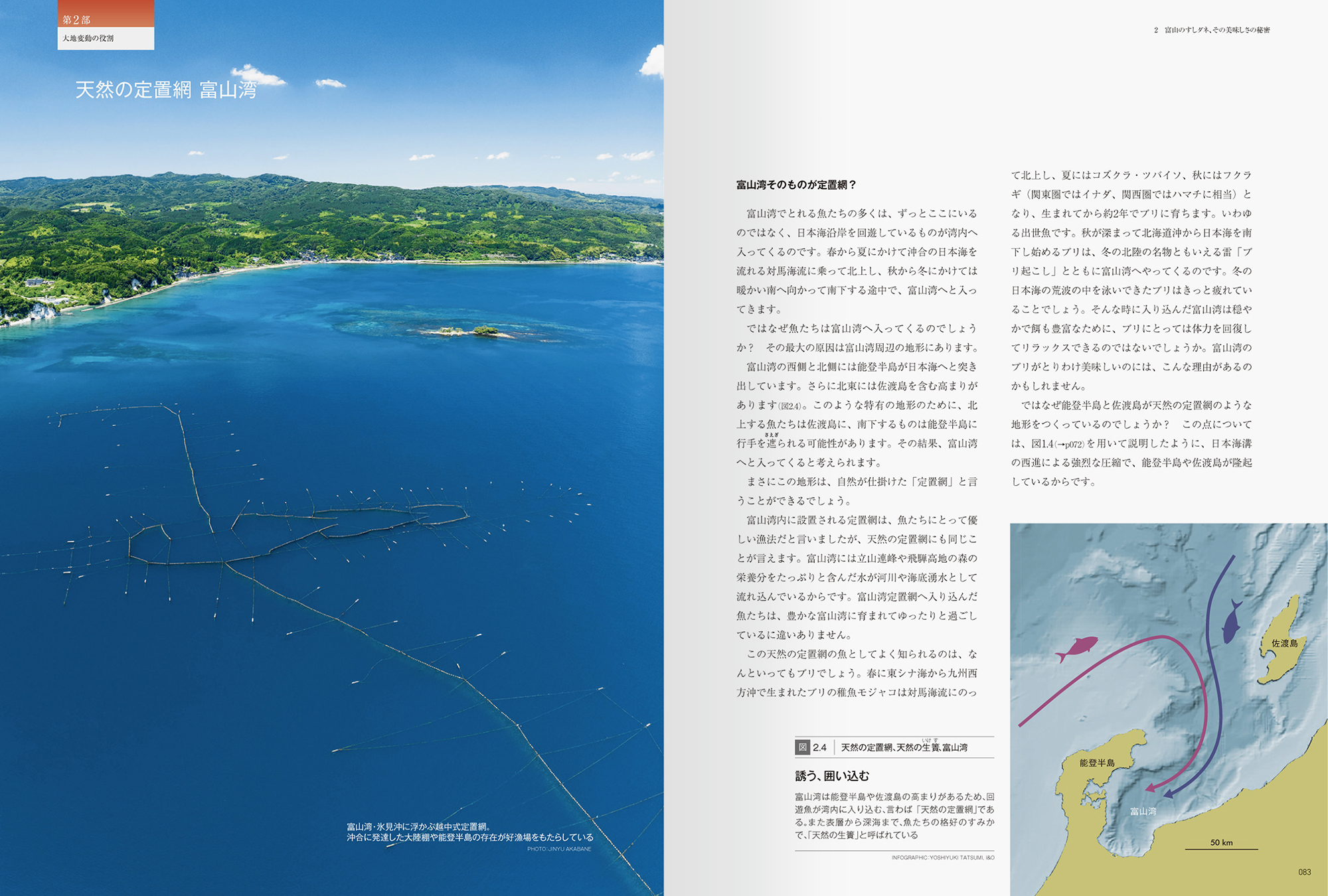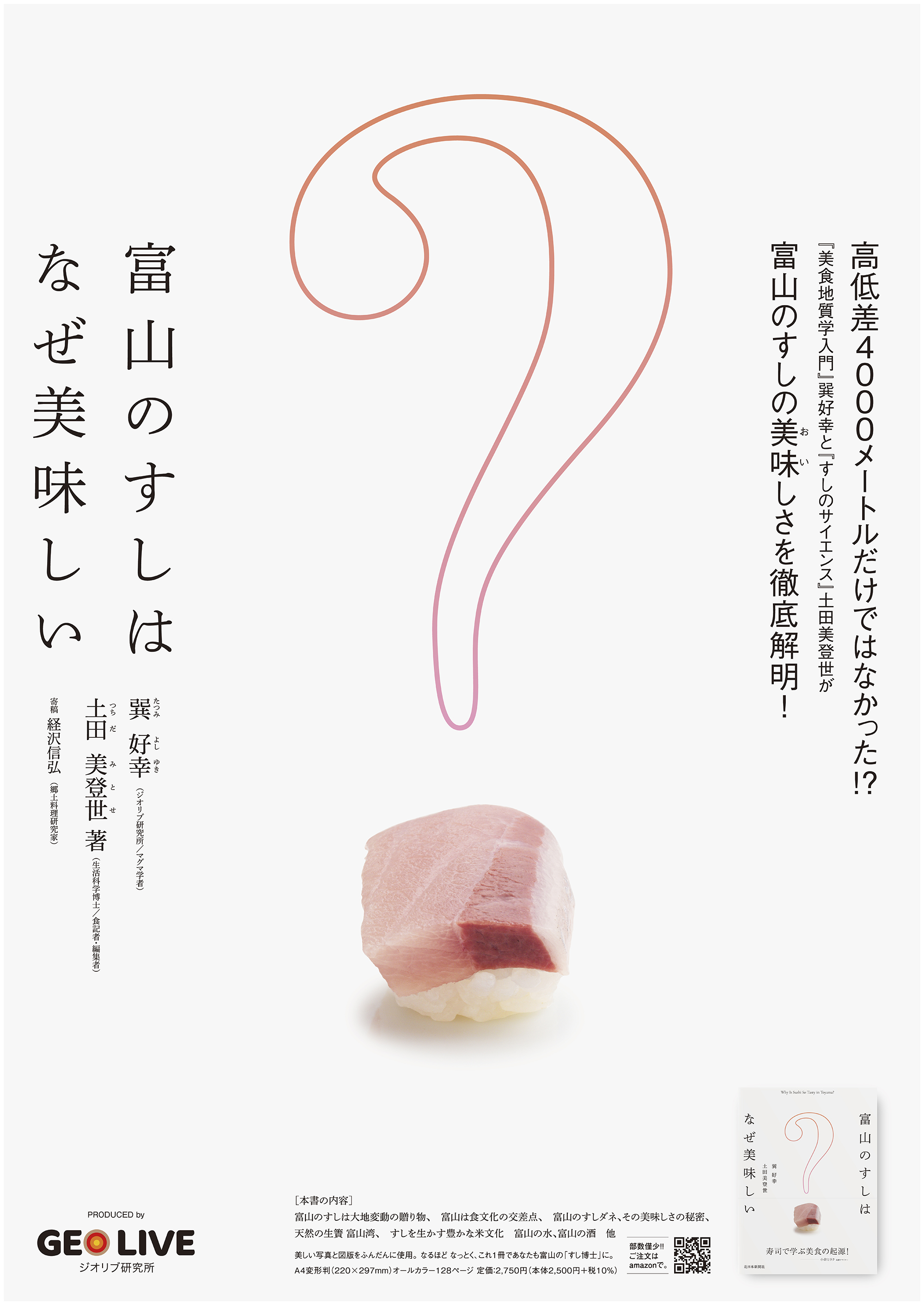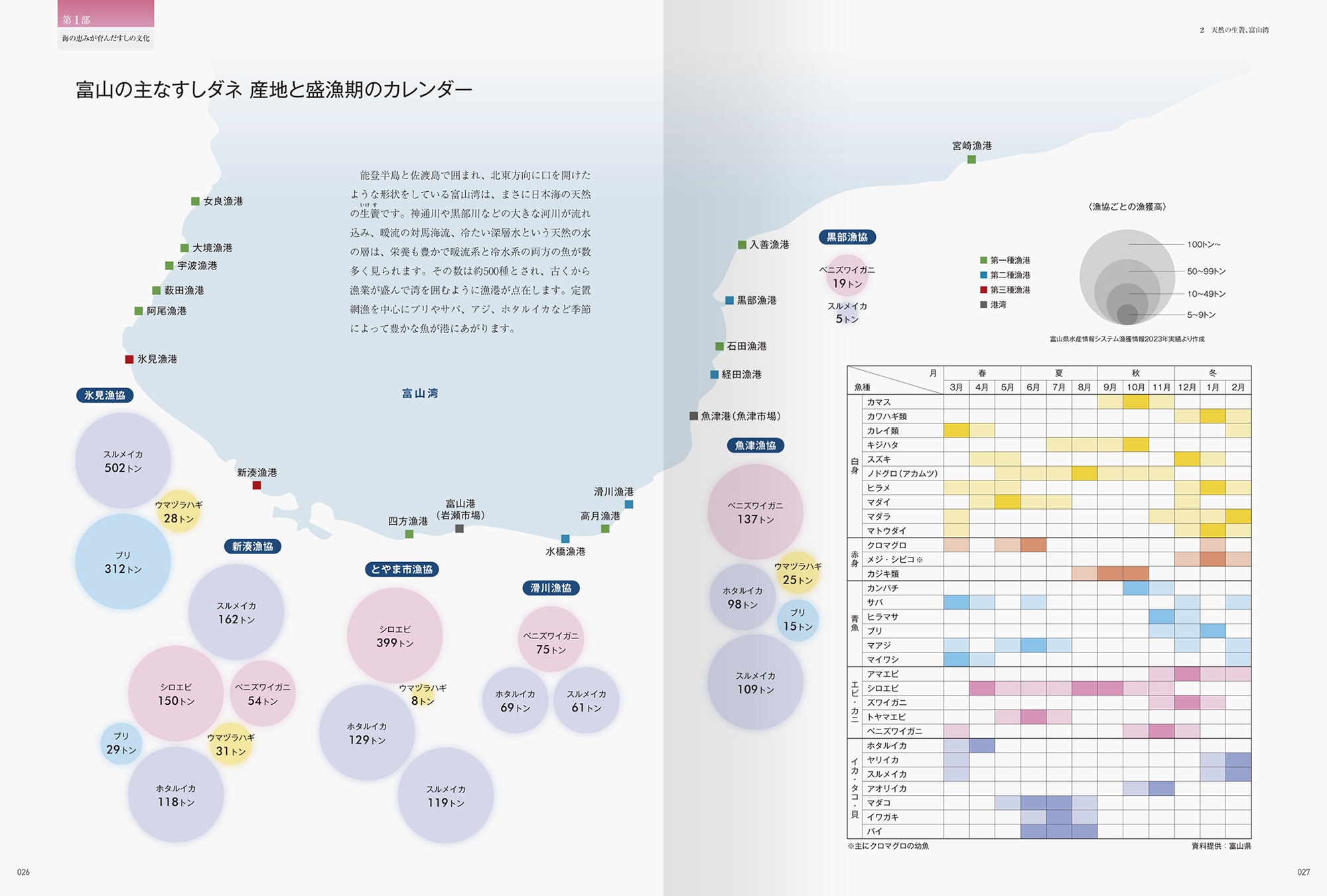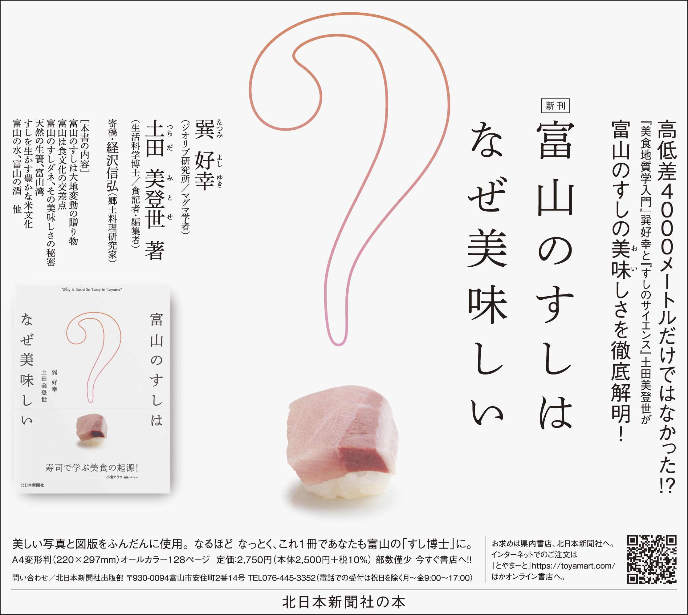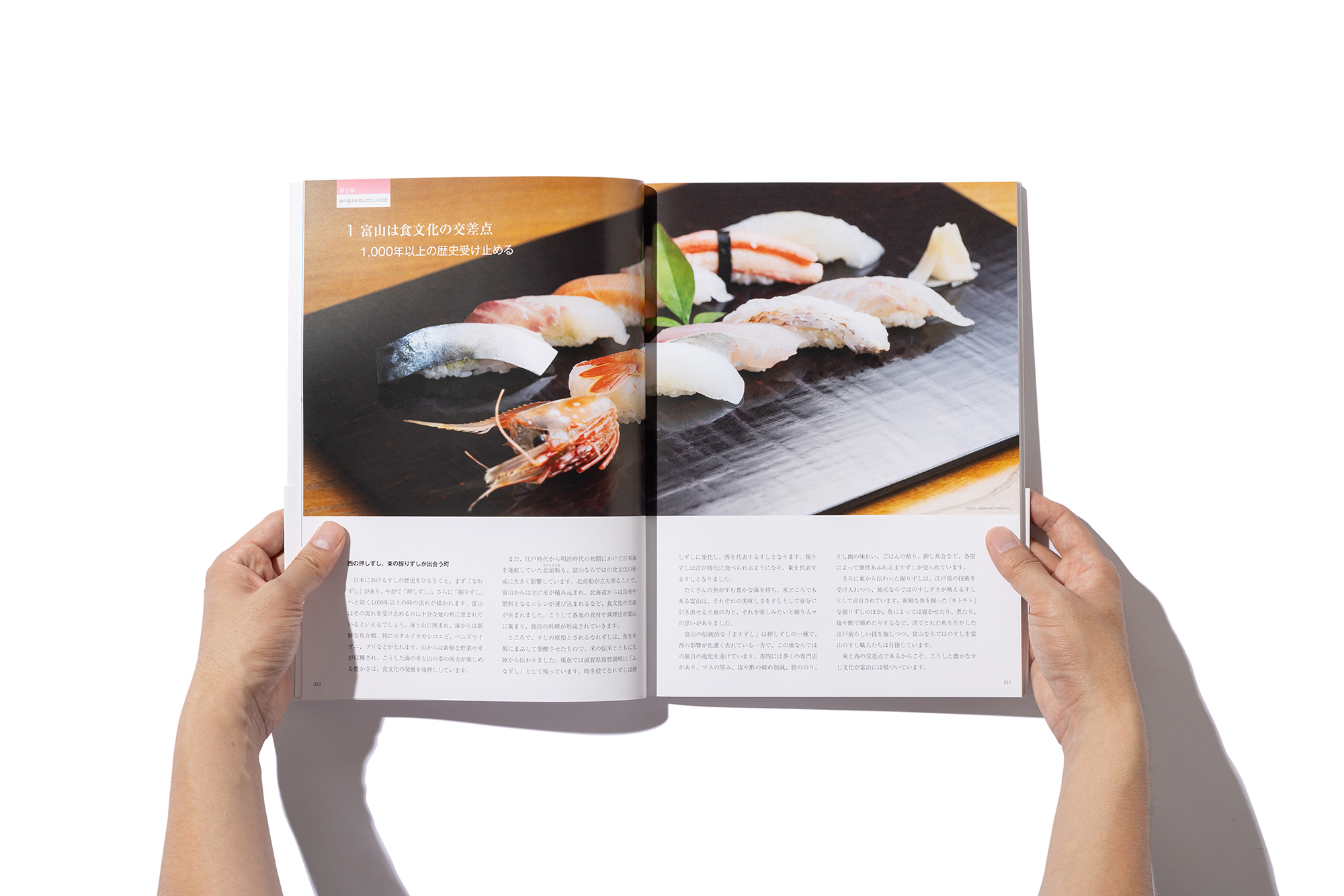 富山県が進める寿司ブランディング「寿司といえば、富山」の一環として制作したビジュアルブック。寿司のおいしさを地質学の視点からひもとき、県民のシビックプライドを育むことをめざす。県内すべての教育機関に配布。
